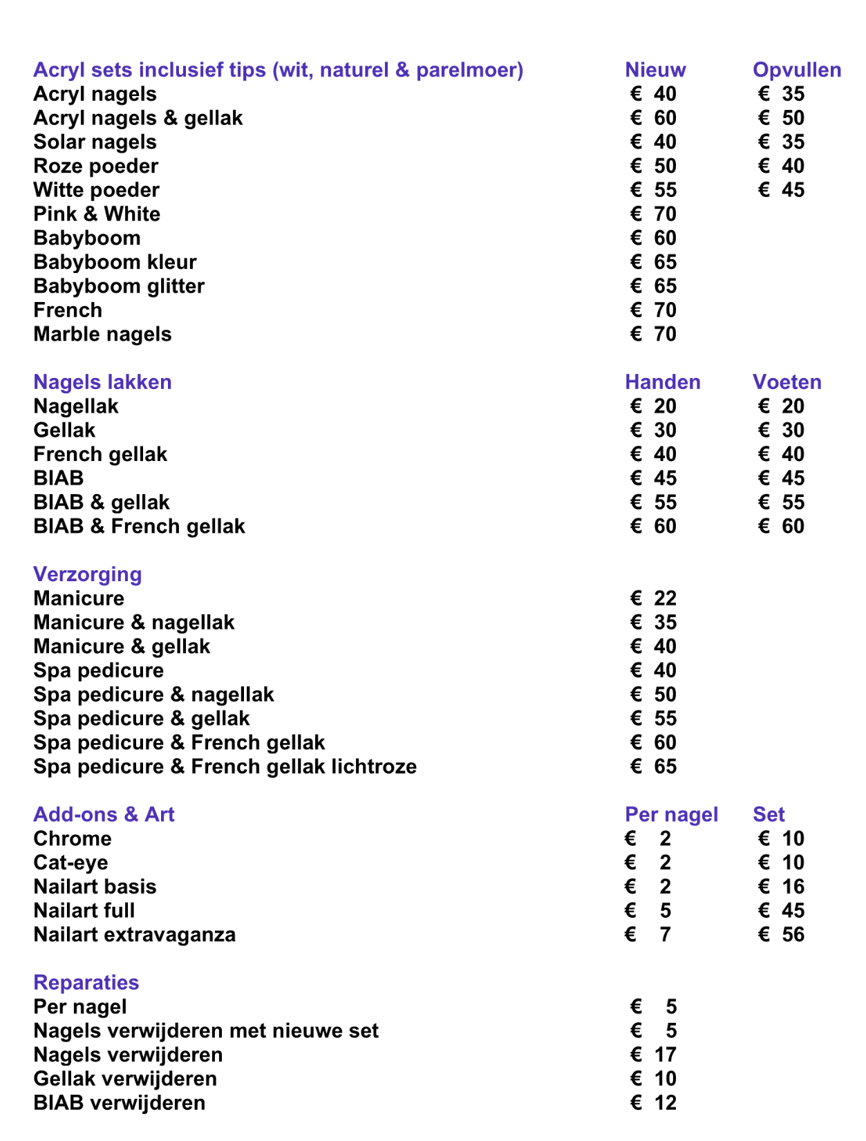 Prijslijst 2026